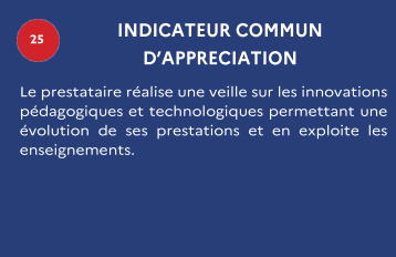 Cet environnement exigeant impose une veille active sur les innovations légales, les règles de prise en charge, l’émergence de nouvelles compétences et l’évolution des pratiques pédagogiques favorisant la réussite des bénéficiaires (indicateurs 23-24-25).